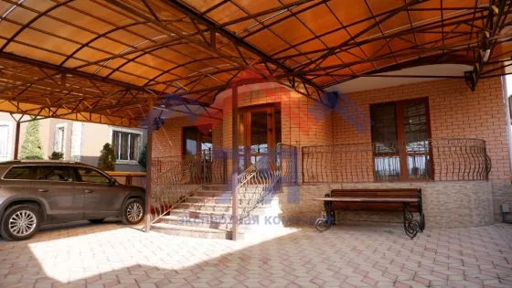 В доме три этажа жилые , где расположены 7 комнат(с балконами ) , 3 холла , 3 санузла( на каждом из этажей) , кухня , гардеробная , бытовые комнаты.