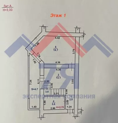 - 1 уровень: санузел, кухня, комната, лоджия.